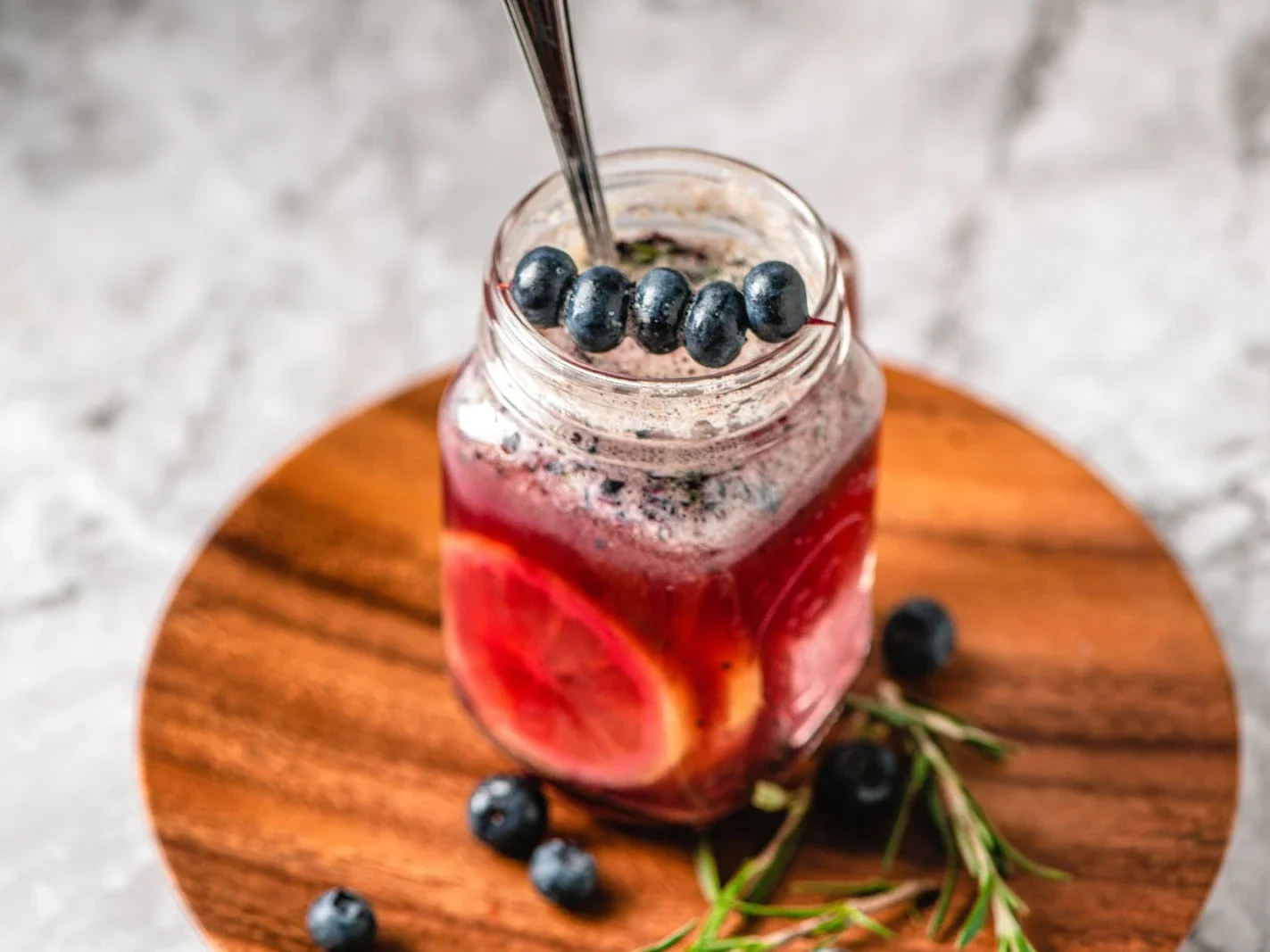1. Lemon Balm & Blueberry Cooler (calming, uplifting)